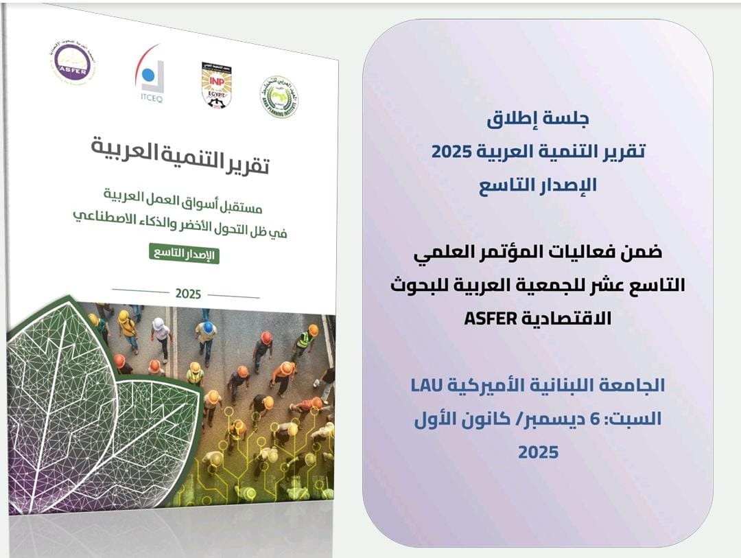 يُطلق التقرير ضمن فعاليات اليوم الثاني من المؤتمر العلمي التاسع عشر للجمعية العربية للبحوث الاقتصادية والذي ينعقد في الجامعة اللبنانية الأميركية في العاصمة اللبنانية بيروت خلال يومي 5 و6 ديسمبر 2025.