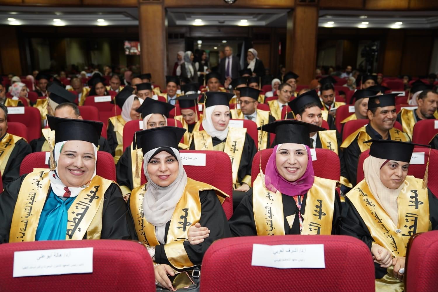 وفي بداية كلمته أعرب أ.د أشرف العربي عن بالغ سعادته بتخرج دفعتي الماجستير الأكاديمي والمهني لعام 2022/2023م، مشيرًا إلى حرص المعهد على اتباع أفضل المعايير العلمية والفنية في تقديم برامجه الدراسية لرفع كفاءة الكوادر البشرية، في مجالات التخطيط والتنمية المستدامة، وتهيئة البيئة الملائمة لإطلاق إمكانات الشباب، وتوفير الظروف المواتية لهم علمياً وتكنولوجياً وفنياً على جميع الأصعدة.