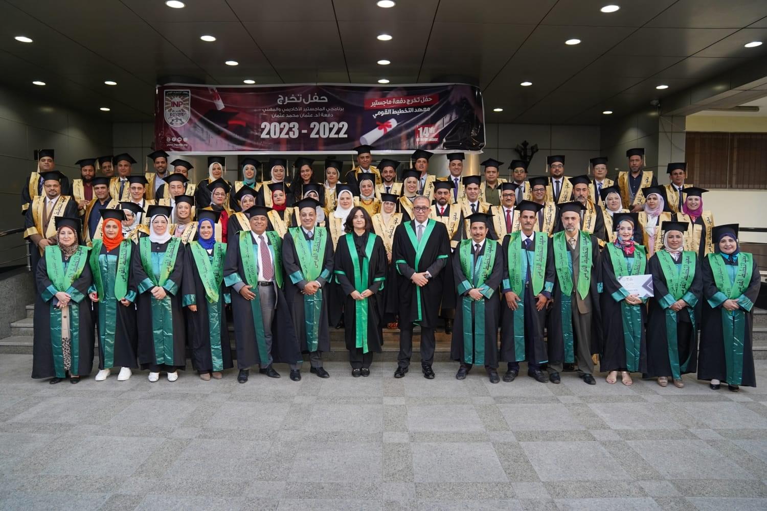 شهد أ.د أشرف العربي رئيس معهد التخطيط القومي حفل تخرج دفعة جديدة من برنامجي الماجستير الأكاديمي (التخطيط والتنمية)، والماجستير المهني (التخطيط للتنمية المستدامة) لعام 2022/2023 دفعة “الدكتور عثمان محمد عثمان” وذلك بحضور أ.د هالة أبو علي نائب رئيس المعهد لشئون البحوث والدراسات العليا، وأ.د. أشرف صلاح الدين نائب رئيس المعهد لشؤون التدريب والاستشارات وخدمة المجتمع، ود.يحيى حسين المنسق العلمي لبرامج الدراسات العليا ، وعدد من القيادات العلمية والإدارية بالمعهد.