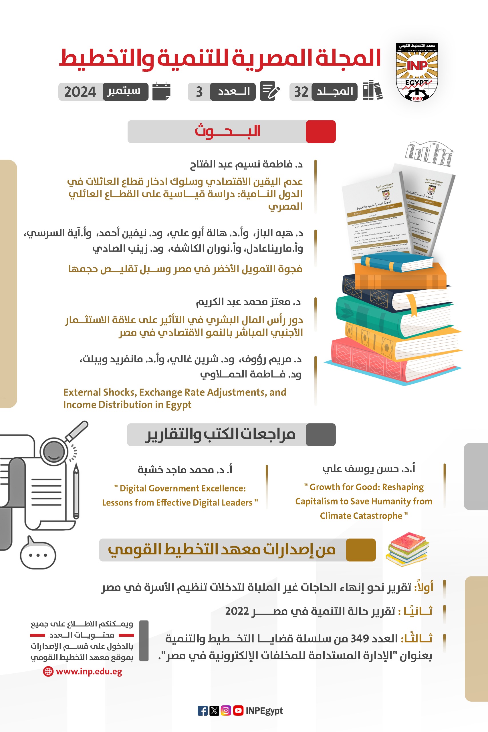ويمكنكم الاطلاع على جميع محتويات العدد بالدخول على قسم الإصدارات بموقع معهد التخطيط القومي https://inp.edu.eg/