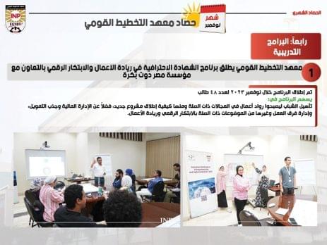 نظم معهد التخطيط القومي برنامجاً تدريبياً مكثفا حول" إدارة الموارد البشرية والعلاقات الصناعية"، بالتعاون مع مؤسسة التعا...