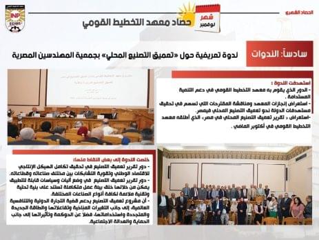نشر معهد التخطيط القومي تقرير “حصاد نوفمبر 2023” سلط من خلاله الضوء على الأنشطة والفعاليات التي نفذها خلال شهر نوفمبر، ...