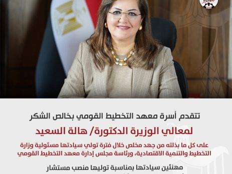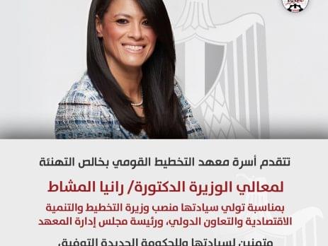 تتقدم أسرة معهد التخطيط القومي بخالص التهنئة لمعالي الوزيرة الدكتورة/ رانيا المشاط بمناسبة تولي سيادتها منصب وزير...