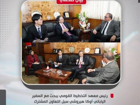 استقبل اليوم الأحد أ.د/ أشرف العربي رئيس معهد التخطيط القومي السيد أوكا هيروشي سفير دولة اليابان والوفد المرافق له، لبح...